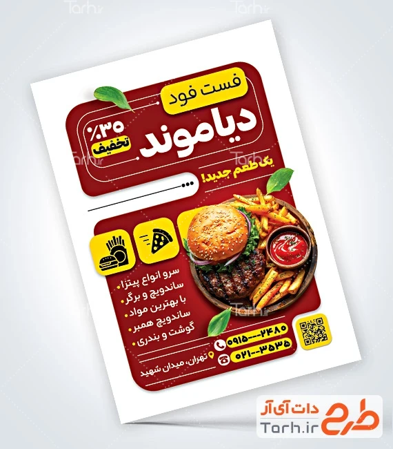 - دسته بندی : تراکت ساندویچ، فست فود و پیتزا