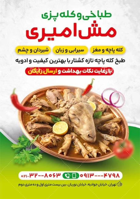 فایل لایه باز تراکت کله پزی با عکس کله پاچه کد فایل 4675098