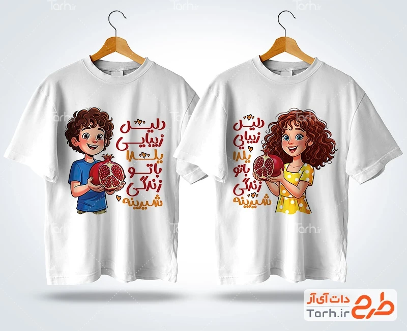 فایل لایه باز تی شرت ست دو نفره شب یلدا با تصویرسازی زن و مرد کد فایل 4681527