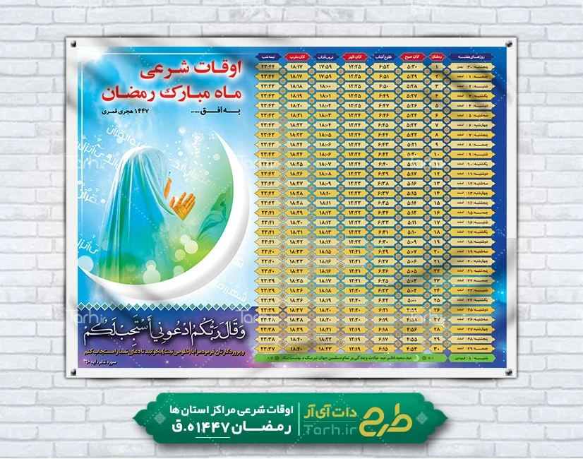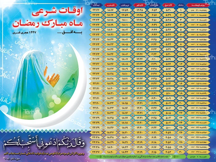 ابعاد قابل چاپ طرح اوقات شرعی ماه رمضان و کاربرد آن