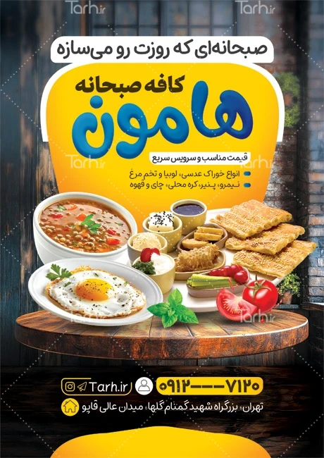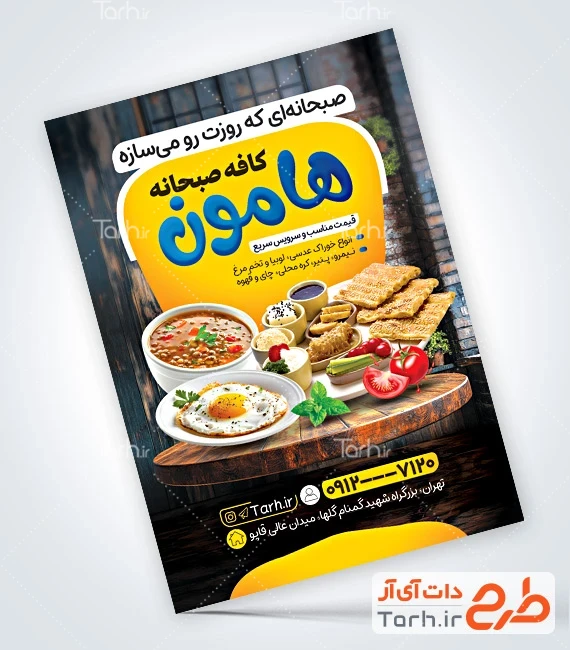 تراکت خام کافه صبحانه با قابلیت ویرایش المان ها کد فایل 4702613