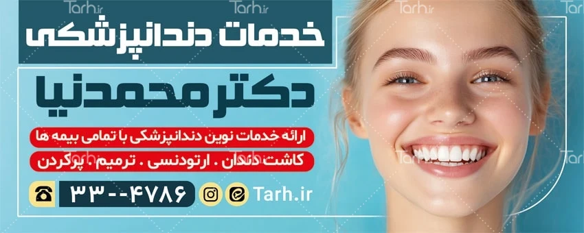 طرح بنر آماده کلینیک دندان پزشکی با فرمت psd و قابل ویرایش در نرم افزار فتوشاپ به صورت لایه باز توسط تیم طراحان طرح دات آی آر طراحی شده است. در طرح لایه باز بنر دندانپزشکی از تصاویر و المان های با کیفیت و متناسب با استاندارد چاپ استفاده شده، همچنین نکات مهم در طرح بنر مغازه مانند رنگ بندی، رعایت حاشیه، فاصله ها، سایز و نوع فونت مناسب طراحی تابلو مشاغل و ... رعایت گردیده است. طرح بنر دندانپزشکی شامل عکس زن و وسایل دندان پزشکی می باشد که المان های استفاده شده در طرح بنر لایه باز دندانپزشکی قابلیت ویرایش، جابه جایی و تغییر سایز را دارا بوده و شما می توانید متناسب با سلیقه خودتان طرح بنر تبلیغاتی دندانپزشکی را ویرایش نمایید، همچنین با تغییر تصاویر و متن ها می توانید طرح تابلو تبلیغاتی دندانپزشک را به طرح تابلوی شغل مورد نظر خود تبدیل نمایید.