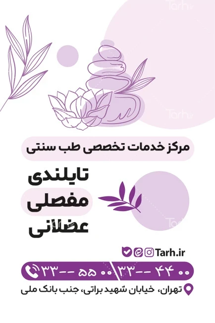 طرح آماده کارت ویزیت ماساژ درمانی با فرمت psd و قابل ویرایش در نرمافزار فتوشاپ بهصورت لایه باز و پشت و رو (دو رو) توسط تیم طراحان طرح دات آی آر طراحی شده است. طرح کارت ویزیت ماساژ درمانی از تصاویر و المانهای باکیفیت و متناسب با استاندارد چاپ استفادهشده، همچنین نکات مهم در طرح کارت ویزیت مانند رنگبندی، رعایت حاشیه، فاصلهها، فضای کافی برای درج متن، سایز و نوع فونت مناسب طراحی کارت ویزیت و ... رعایت گردیده است. نمونه کارت ویزیت ماساژ درمانی شامل وکتور خدمات ماساژ میباشد که المانهای استفادهشده در طرح کارت ویزیت مرکز ماساژ قابلیت ویرایش، جابهجایی و تغییر سایز را دارا بوده و شما میتوانید متناسب باسلیقه خودتان کارت ویزیت لایه باز ماساژ درمانی را ویرایش نمایید، همچنین با تغییر تصاویر و متنها میتوانید طرح کارت ویزیت مرکز ماساز درمانی را به طرح کارت ویزیت کسب و کار مد نظر خود شخصی سازی نمایید.
