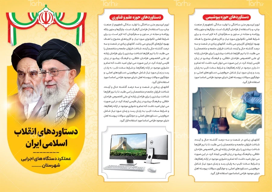 ابعاد قابل چاپ طرح بروشور دستاورد های انقلاب و کاربرد آن