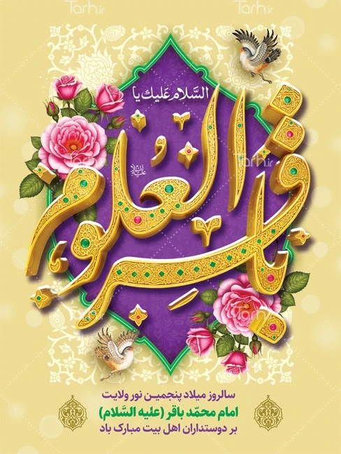 طرح خام پوستر ولادت امام محمد باقر دارای تایپوگرافی باقر العلوم کد فایل 4792063