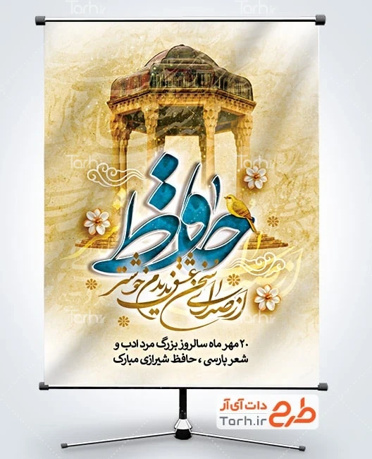 پوستر بزرگداشت حافظ لایه باز با فرمت psd و قابل ویرایش در نرم افزار فتوشاپ به صورت لایه باز توسط تیم طراحان طرح دات آی آر طراحی شده است. در طرح لایه باز بزرگداشت حافظ از تصاویر و المان های با کیفیت و متناسب با استاندارد چاپ استفاده گردیده است. پوستر تبریک روز حافظ لایه باز شامل خوشنویسی حافظ، تصویرسازی حافظیه و پرنده می باشد که المان های استفاده شده در بنر روز حافظ قابلیت ویرایش، جابه جایی و تغییر سایز را دارا بوده و شما می توانید متناسب با سلیقه خودتان طرح بزرگداشت خواجه حافظ شیرازی را ویرایش نمایید.