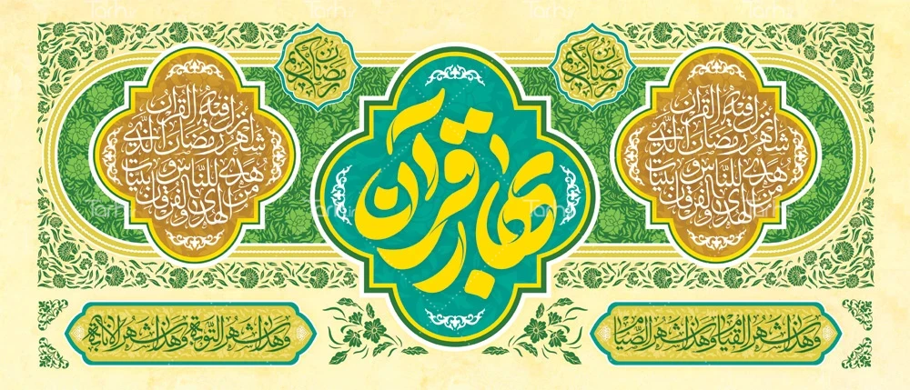 طرح کتیبه پشت سن ماه رمضان با تایپوگرافی بهار قرآن کد فایل 4821753