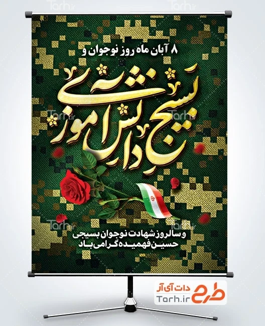 پوستر روز نوجوان لایه باز با فرمت psd و قابل ویرایش در نرم افزار فتوشاپ به صورت لایه باز توسط تیم طراحان طرح دات آی آر طراحی شده است. در طرح بنر شهید حسین فهمیده و روز نوجوان از تصاویر و المان های با کیفیت و متناسب با استاندارد چاپ استفاده گردیده است. پوستر هفته بسیج دانش آموزی شامل تایپوگرافی بسیج دانش آموزی، وکتور گل و پرچم ایران می باشد که المان های استفاده شده در طرح لایه باز بنر هفته بسیج دانش آموزی قابلیت ویرایش، جابه جایی و تغییر سایز را دارا بوده و شما می توانید متناسب با سلیقه خودتان طرح روز بسیج دانش آموزی را ویرایش نمایید.