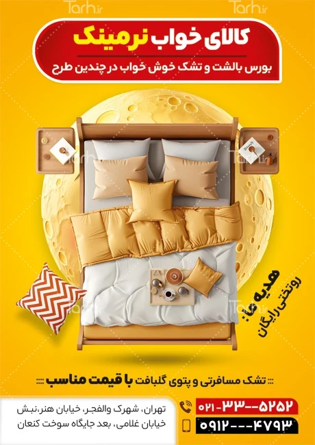 طرح لایه باز تراکت فروشگاه کالای خواب دارای تصویرسازی تخت خواب کد فایل 4835910