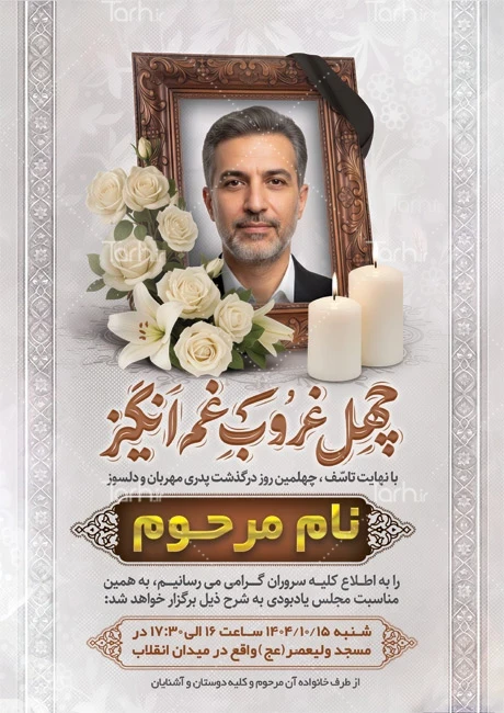 طرح آماده آگهی ترحیم چهلم پدر با خوشنویسی چهل غروب غم انگیز کد فایل 4850712