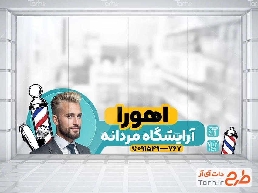 طرح برچسب شیشه آرایشگاه مردانه با قابلیت ویرایش المان ها کد فایل 4867015