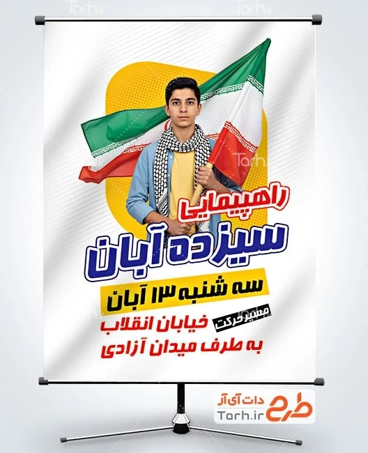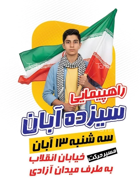 دانلود طرح بنر اطلاعیه راهپیمایی 13 آبان با عکس پرچم ایران کد فایل 4867591