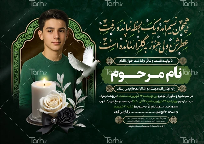 فایل لایه باز آگهی ترحیم جوان ناکام با محل جایگذاری عکس متوفی کد فایل 4869023