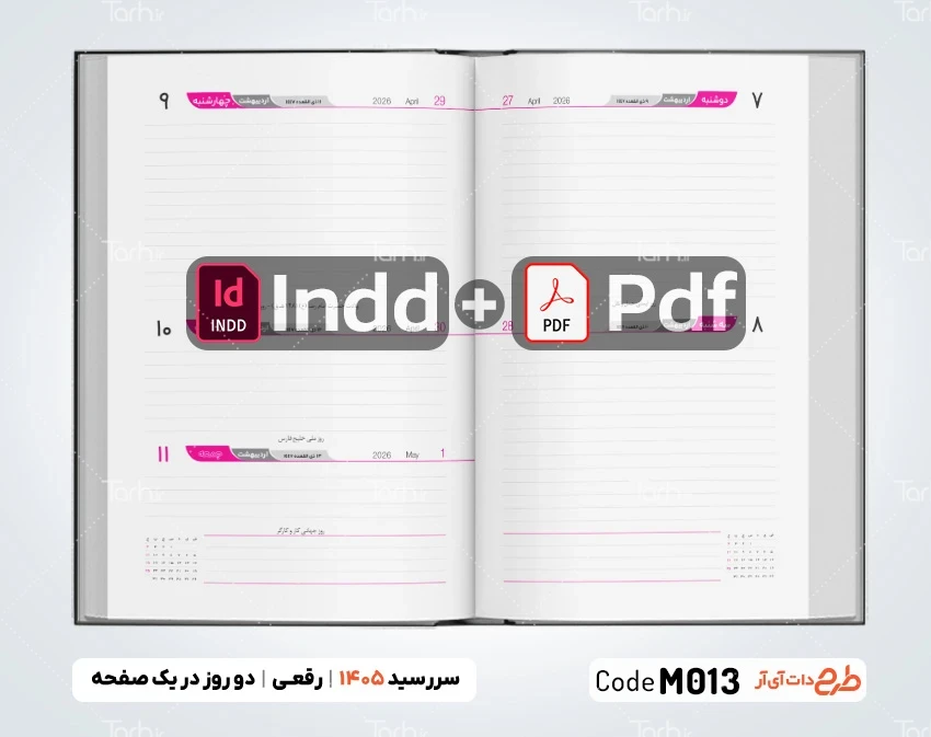 فایل ایندیزاین سررسید رقعی دو روز در یک صفحه (کد M013) به صورت کاملا لایه باز و قابل ویرایش
