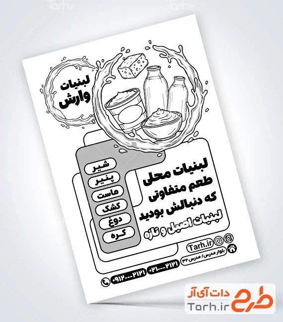 ابعاد قابل چاپ طرح تراکت سیاه سفید سوپر لبنیاتی و کاربرد آن