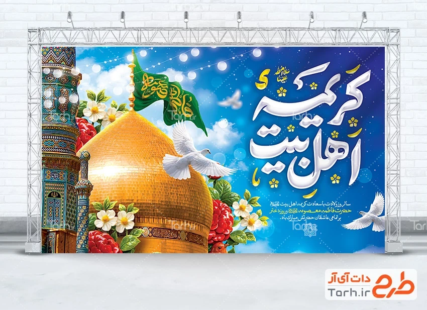 طرح بنر پشت سن ولادت حضرت معصومه با فرمت psd و قابل ویرایش در نرم افزار فتوشاپ به صورت لایه باز توسط تیم طراحان طرح دات آی آر طراحی شده است. در طرح بنر میلاد حضرت معصومه از تصاویر و المان های با کیفیت و متناسب با استاندارد چاپ استفاده گردیده است. بنر لایه باز جایگاه میلاد حضرت معصومه شامل خوشنویسی کریمه اهل بیت و وکتور گل می باشد که المان های استفاده شده در بنر لایه باز ولادت حضرت معصومه قابلیت ویرایش، جابه جایی و تغییر سایز را دارا بوده و شما می توانید متناسب با سلیقه خودتان طرح دکور ولادت حضرت معصومه را ویرایش نمایید.