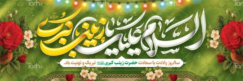 طرح بنر پلاکارد تبریک میلاد حضرت زینب با فرمت psd و قابل ویرایش در نرم افزار فتوشاپ به صورت لایه باز توسط تیم طراحان طرح دات آی آر طراحی شده است. در طرح لایه باز ولادت حضرت زینب از تصاویر و المان های با کیفیت و متناسب با استاندارد چاپ استفاده گردیده است. طرح بنر میلاد حضرت زینب شامل تایپوگرافی السلام علیک یا زینب کبری و وکتور گل و چراغانی می باشد که المان های استفاده شده در بنر لایه باز ولادت حضرت زینب قابلیت ویرایش، جابه جایی و تغییر سایز را دارا بوده و شما می توانید متناسب با سلیقه خودتان طرح ولادت حضرت زینب را ویرایش نمایید.