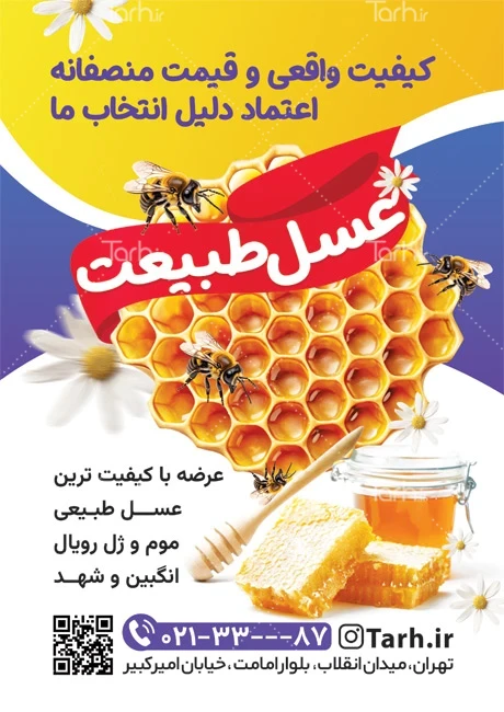 طرح تراکت آماده عسل فروشی دارای عکس موم عسل کد فایل 4982615