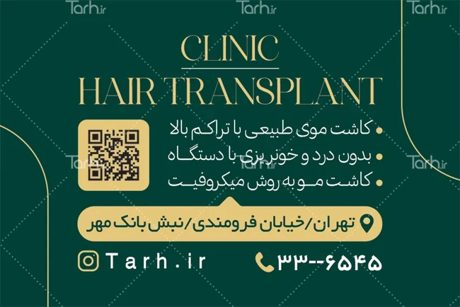 دانلود طرح کارت ویزیت مرکز کاشت مو با فرمت psd و قابل ویرایش در نرمافزار فتوشاپ بهصورت لایه باز و پشت و رو (دو رو) توسط تیم طراحان طرح دات آی آر طراحی شده است. طرح کارت ویزیت کاشت مو از تصاویر و المانهای باکیفیت و متناسب با استاندارد چاپ استفادهشده، همچنین نکات مهم در طرح کارت ویزیت مانند رنگبندی، رعایت حاشیه، فاصلهها، فضای کافی برای درج متن، سایز و نوع فونت مناسب طراحی کارت ویزیت و ... رعایت گردیده است. نمونه کارت ویزیت کاشت مو شامل عکس مرد میباشد که المانهای استفادهشده در طرح کارت ویزیت کلینیک کاشت مو قابلیت ویرایش، جابهجایی و تغییر سایز را دارا بوده و شما میتوانید متناسب باسلیقه خودتان کارت ویزیت لایه باز کاشت مو را ویرایش نمایید، همچنین با تغییر تصاویر و متنها میتوانید طرح کارت ویزیت کلینیک کاشت مو را به طرح کارت ویزیت کسب و کار مد نظر خود شخصی سازی نمایید.