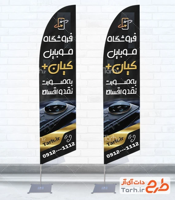 ابعاد قابل چاپ پرچم ساحلی لایه باز موبایل فروشی و کاربرد آن
