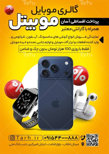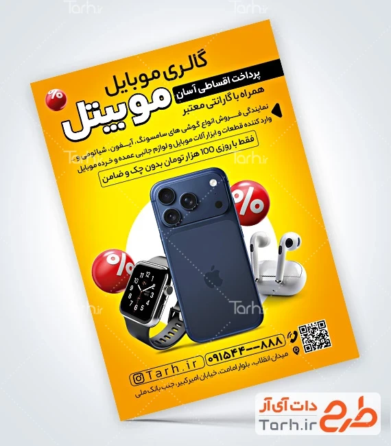 تراکت تبلیغاتی لایه باز فروشگاه موبایل با تم موبایل کد فایل 5028643
