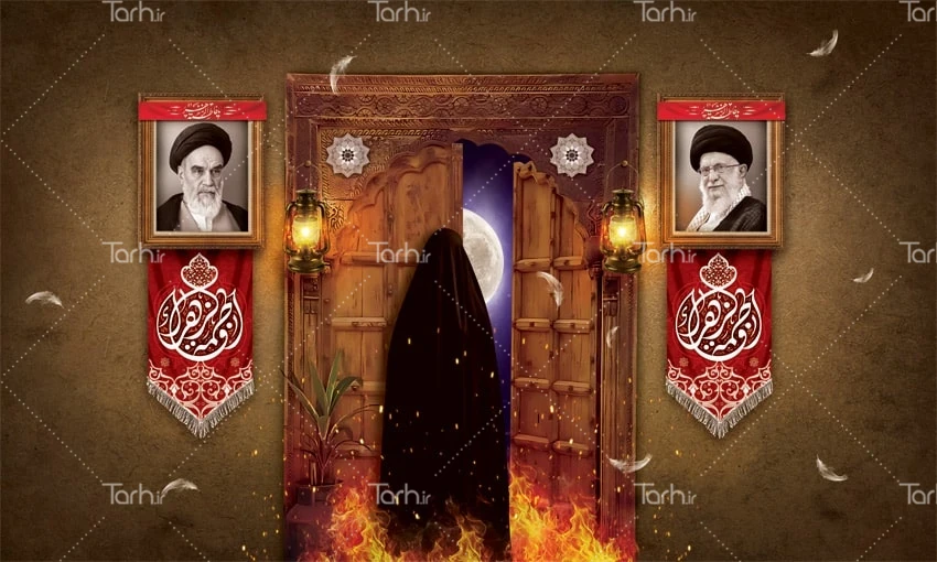 بنر پشت منبری شهادت حضرت زهرا با فرمت psd و قابل ویرایش در نرم افزار فتوشاپ به صورت لایه باز توسط تیم طراحان طرح دات آی آر طراحی شده است. در طرح لایه باز بنر شهادت حضرت زهرا از تصاویر و المان های با کیفیت و متناسب با استاندارد چاپ استفاده گردیده است. طرح کتیبه فاطمیه شامل عکس امام خمینی و خامنه ای و عکس در آتش گرفته و بیرق فاطمه الزهرا میباشد که المان های استفاده شده در طرح بنر پشت مداح شهادت حضرت فاطمه قابلیت ویرایش، جابه جایی و تغییر سایز را دارا بوده و شما می توانید متناسب با سلیقه خودتان طرح بنر پشت منبر فاطمیه را ویرایش نمایید.