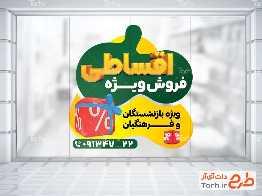 طرح آماده استیکر فروش ویژه اقساطی با فرمت psb و قابل ویرایش در نرم افزار فتوشاپ به صورت لایه باز توسط تیم طراحان طرح دات آی آر طراحی شده است. در طرح استیکر تبلیغاتی فروش اقساطی از تصاویر و المان های با کیفیت و متناسب با استاندارد چاپ استفاده شده، همچنین نکات مهم در طرح لایه باز استیکر فروش قسطی مانند رنگ بندی، رعایت حاشیه، فاصله ها، سایز و نوع فونت مناسب طراحی استیکر و ... رعایت گردیده است. طرح برچسب روی شیشه فروش ویژه محصولات شامل وکتور درصد می باشد و المان های استفاده شده در طرح استیکر فروش اقساطی قابلیت ویرایش، جابه جایی و تغییر سایز را دارا بوده و شما می توانید متناسب با سلیقه خودتان طرح برچسب دیواری فروش اقساطی را ویرایش نمایید، همچنین با تغییر تصاویر و متن ها می توانید طرح استیکر خرید اقساطی را به طرح استیکر شغل مورد نظر خود تبدیل نمایید.