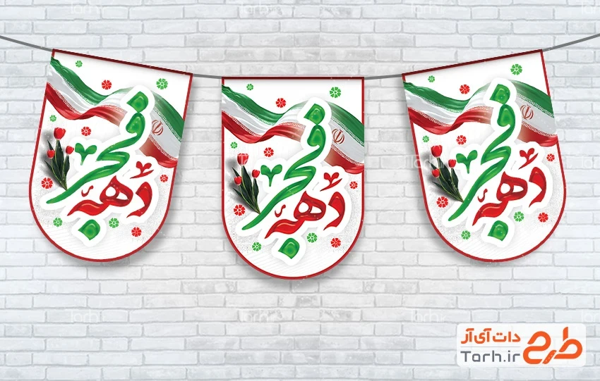 طرح پرچم آویز دهه فجر لایه باز شامل خوشنویسی دهه فجر کد فایل 5079218