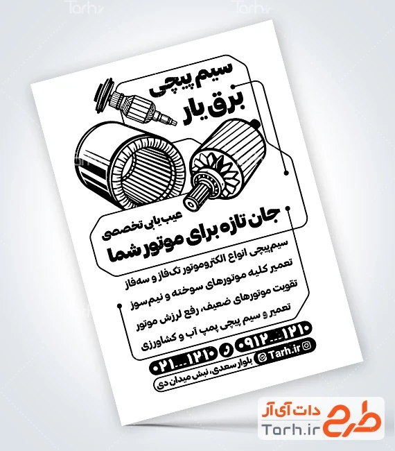 ابعاد قابل چاپ طرح تراکت سیاه سفید سیم پیچی و کاربرد آن