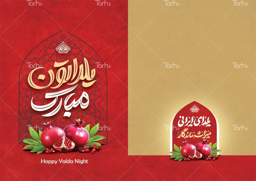 طرح قابل ویرایش کارت پستال شب یلدا با فرمت psd و قابل ویرایش در نرم افزار فتوشاپ به صورت لایه باز توسط تیم طراحان طرح دات آی آر طراحی شده است. در طرح کارت پستال لایه باز شب یلدا از تصاویر و المان های با کیفیت و متناسب با استاندارد چاپ استفاده گردیده است. طرح کارت پستال شب یلدا شامل وکتور انار، خوشنویسی شعر یلدا و تایپوگرافی یلداتون مبارک می باشد که المان های استفاده شده در طرح لایه باز کارت پستال یلدا قابلیت ویرایش، جابه جایی و تغییر سایز را دارا بوده و شما می توانید متناسب با سلیقه خودتان طرح کارت تبریک شب یلدا را ویرایش نمایید.