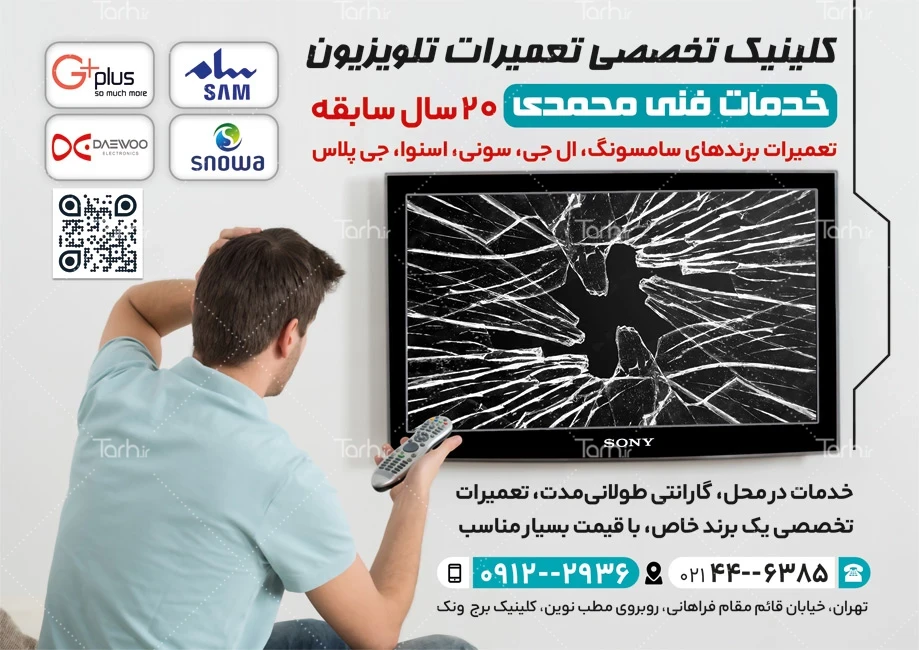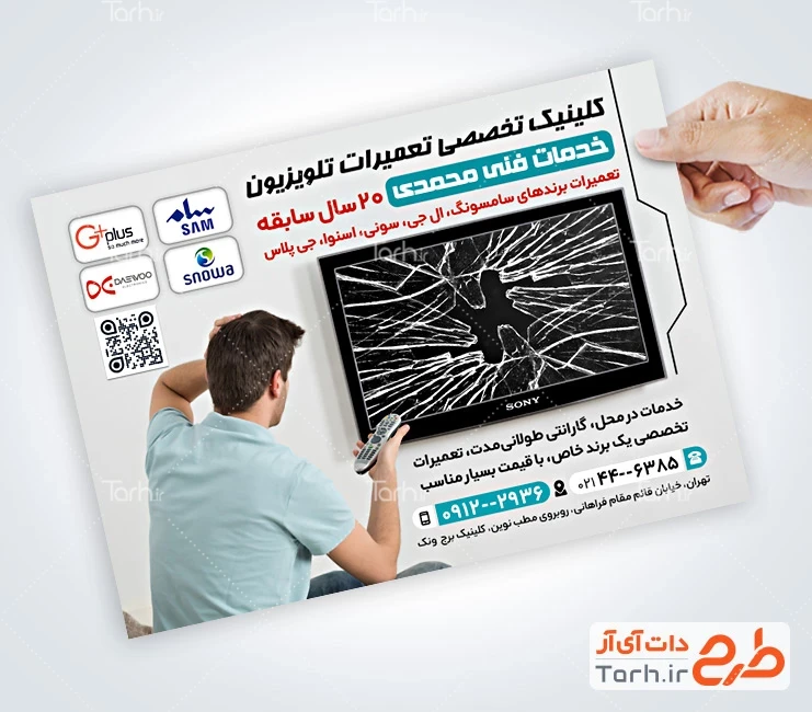 طرح لایه باز تراکت تعمیر تلویزیون دارای عکس تلویزیون شکسته کد فایل 5091473