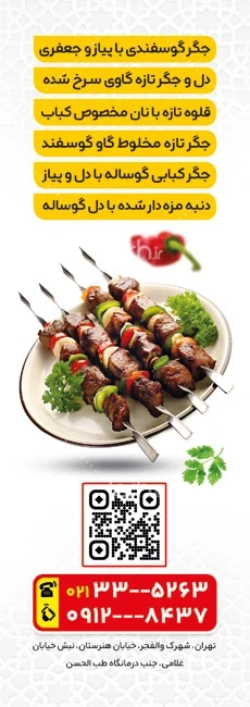 طرح تراکت دو رو جگر سرا با فرمت psd و قابل ویرایش در نرمافزار فتوشاپ بهصورت لایه باز توسط تیم طراحان طرح دات آی آر طراحی شده است. در نمونه تراکت جگرکی از تصاویر و المانهای باکیفیت و متناسب با استاندارد چاپ استفادهشده، همچنین نکات مهم در طرح تراکت دو رو جیگرکی مانند رنگبندی، رعایت حاشیه، فاصلهها، فضای کافی برای درج متن، سایز و نوع فونت مناسب طراحی تراکت و ... رعایت گردیده است. طرح لایه باز تراکت جگرکی شامل عکس سیخ جگر و تصویرسازی آشپز میباشد که المانهای استفادهشده در طرح تراکت پشت و رو جگرکی قابلیت ویرایش، جابهجایی و تغییر سایز را دارا بوده و شما میتوانید متناسب باسلیقه خودتان تراکت پشت رو جگرکی را ویرایش نمایید، همچنین با تغییر تصاویر و متنها میتوانید طرح تراکت دو رو دل و جگر را به طرح تراکت کسب و کار مد نظر خود شخصی سازی نمایید.