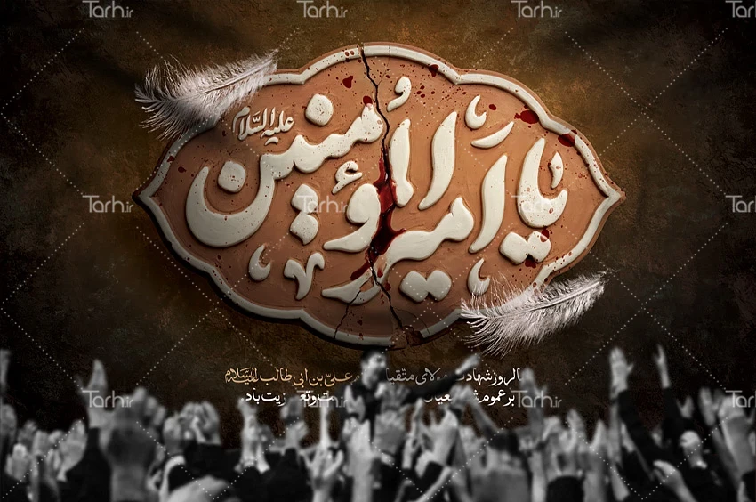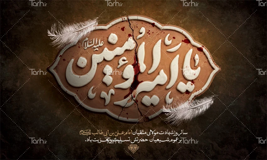 طرح بنر جایگاه شهادت حضرت علی دارای خوشنویسی یا امیرالمومنین کد فایل 5120963