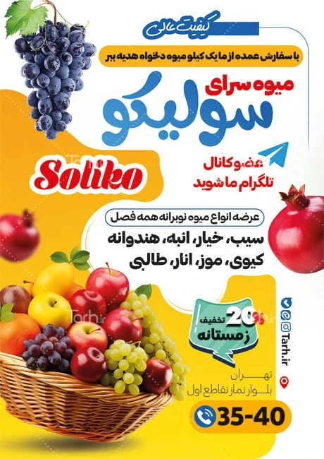 طرح آماده تراکت میوه سرا با قابلیت ویرایش المان ها کد فایل 5168749