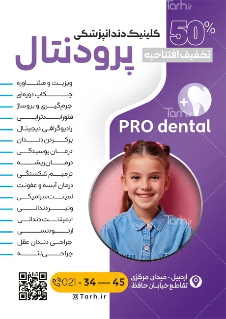 طرح تراکت تبلیغاتی دندانپزشکی کودکان با عکس کودک دختر کد فایل 5169238