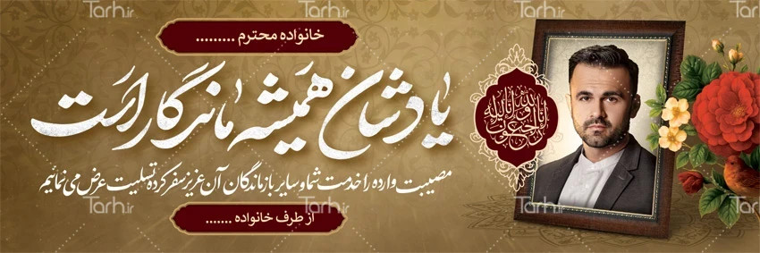 طرح بنر عرض تسلیت لایه باز با خوشنویسی یادشان همیشه ماندگار است کد فایل 5239610