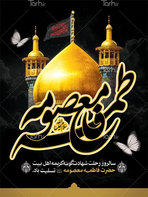 پوستر خام وفات حضرت معصومه با کیفیت بالا با فرمت psd و قابل ویرایش در نرم افزار فتوشاپ به صورت لایه باز توسط تیم طراحان طرح دات آی آر طراحی شده است. در طرح لایه باز وفات حضرت معصومه از تصاویر و المان های با کیفیت و متناسب با استاندارد چاپ استفاده گردیده است. طرح بنر وفات حضرت معصومه شامل تایپوگرافی فاطمه معصومه و عکس گنبد و گلدسته حرم حضرت معصومه می باشد که المان های استفاده شده در پوستر لایه باز وفات حضرت معصومه قابلیت ویرایش، جابه جایی و تغییر سایز را دارا بوده و شما می توانید متناسب با سلیقه خودتان پوستر خام رحلت حضرت معصومه را ویرایش نمایید.