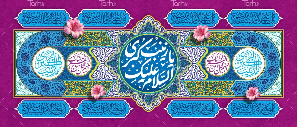 طرح بنر کتیبه میلاد حضرت زینب با تایپوگرافی السلام علیک یا زینب کبری کد فایل 5267043