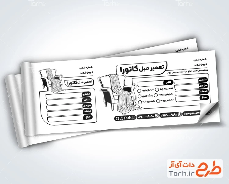 ابعاد قابل چاپ طرح لایه باز قبض رسید تعمیرات مبل و کاربرد آن