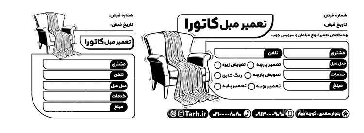 طرح آماده قبض تعمیر مبلمان با قابلیت ویرایش المان ها کد فایل 5268317