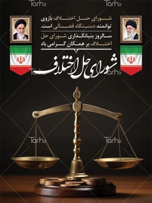 طرح لایه باز بنر روز شورای حل اختلاف با فرمت psd و قابل ویرایش در نرم افزار فتوشاپ به صورت لایه باز توسط تیم طراحان طرح دات آی آر طراحی شده است. در طرح لایه باز روز شورای حل اختلاف از تصاویر و المان های با کیفیت و متناسب با استاندارد چاپ استفاده گردیده است. طرح بنر خام روز شورای حل اختلاف شامل عکس ترازو عدالت و قاب عکس امام خمینی و رهبری می باشد که المان های استفاده شده در بنر لایه باز روز شورای حل اختلاف قابلیت ویرایش، جابه جایی و تغییر سایز را دارا بوده و شما می توانید متناسب با سلیقه خودتان طرح روز شورای حل اختلاف را ویرایش نمایید.