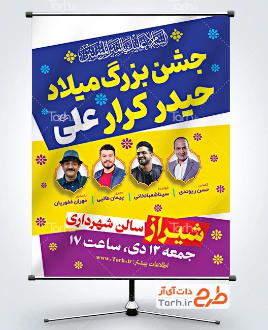 طرح بنر آماده اطلاعیه جشن ولادت امام علی با قابلیت ویرایش زمان و مکان مراسم کد فایل 5312896