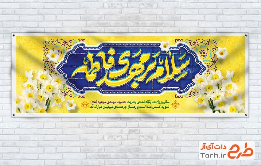 بنر پلاکارد ولادت امام زمان با تایپوگرافی سلام بر مهدی فاطمه کد فایل 5312980