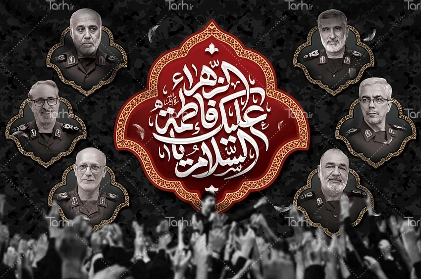 ابعاد قابل چاپ بنر پشت منبری فاطمیه و شهادت حضرت فاطمه و شهدای جنگ اسرائیل به ایران و کاربرد آن