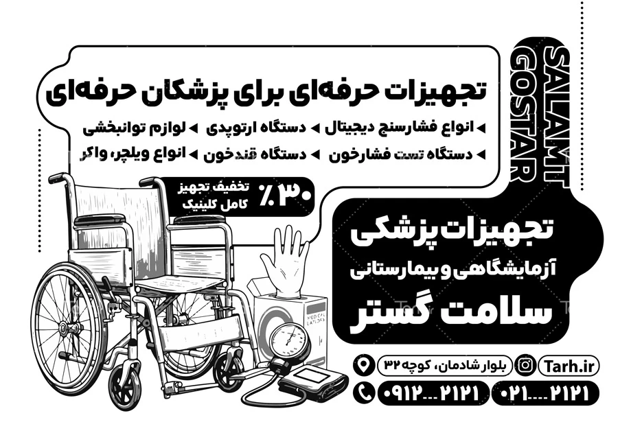 ابعاد قابل چاپ طرح تراکت سیاه سفید تجهیزات پزشکی و کاربرد آن