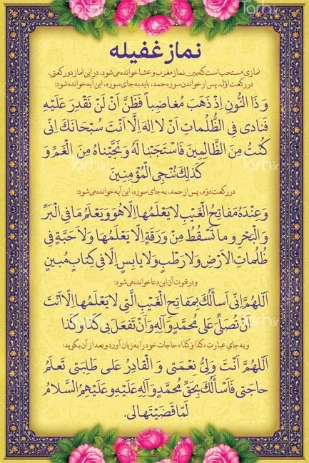 بنر لایه باز نماز غفیله با فرمت psd و قابل ویرایش در نرم افزار فتوشاپ به صورت لایه باز توسط تیم طراحان طرح دات آی آر طراحی شده است. در طرح لایه باز نماز غفیله از تصاویر و المان های با کیفیت و متناسب با استاندارد چاپ استفاده گردیده است. طرح لایه باز نماز غفیله شامل متن دعای نماز غفیله و طرح اسلیمی می باشد که المان های استفاده شده در طرح لایه باز بنر نماز غفیله قابلیت ویرایش، جابه جایی و تغییر سایز را دارا بوده و شما می توانید متناسب با سلیقه خودتان بنر نماز غفیله را ویرایش نمایید.