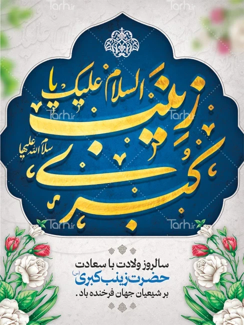 طرح بنر میلاد حضرت زینب با تایپوگرافی السلام علیک یا زینب کبری کد فایل 5427368