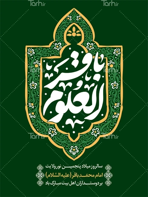 طرح پوستر ولادت امام محمد باقر شامل تایپوگرافی باقرالعلوم کد فایل 5429673