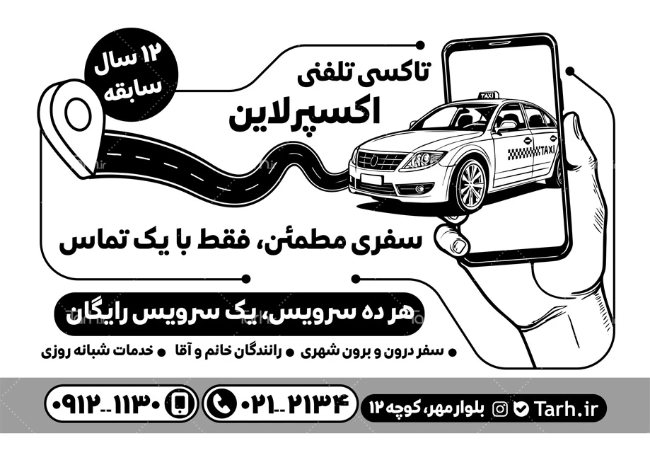 ابعاد قابل چاپ طرح تراکت سیاه سفید تاکسی تلفنی و کاربرد آن