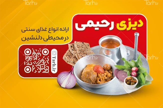 نمونه کارت ویزیت دیزی فروشی با فرمت psd و قابل ویرایش در نرمافزار فتوشاپ بهصورت لایه باز و پشت و رو (دو رو) توسط تیم طراحان طرح دات آی آر طراحی شده است. طرح کارت ویزیت دیزی سرا از تصاویر و المانهای باکیفیت و متناسب با استاندارد چاپ استفادهشده، همچنین نکات مهم در طرح کارت ویزیت مانند رنگبندی، رعایت حاشیه، فاصلهها، فضای کافی برای درج متن، سایز و نوع فونت مناسب طراحی کارت ویزیت و ... رعایت گردیده است. نمونه کارت ویزیت دیزی سرا شامل عکس کاسه آبگوشت میباشد که المانهای استفادهشده در طرح کارت ویزیت دیزی فروشی قابلیت ویرایش، جابهجایی و تغییر سایز را دارا بوده و شما میتوانید متناسب باسلیقه خودتان کارت ویزیت لایه باز دیزی سرا را ویرایش نمایید، همچنین با تغییر تصاویر و متنها میتوانید طرح کارت ویزیت دیزی پزی را به طرح کارت ویزیت کسب و کار مد نظر خود شخصی سازی نمایید.